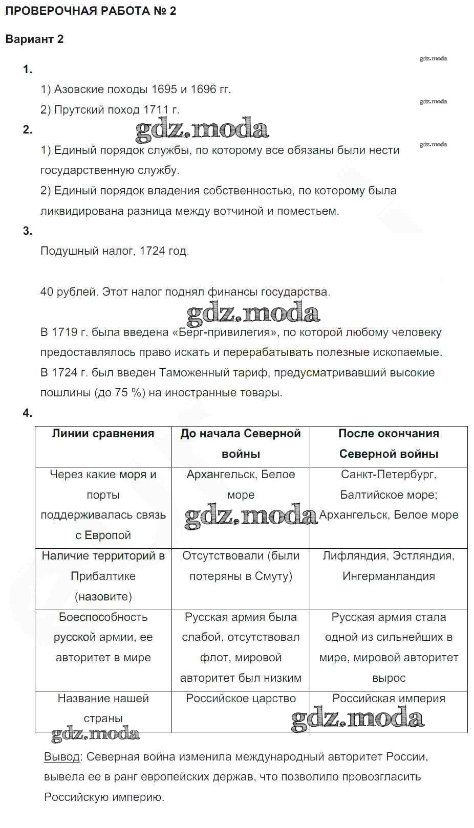 Россия при Петре I / проверочная работа 2 / вариант 2