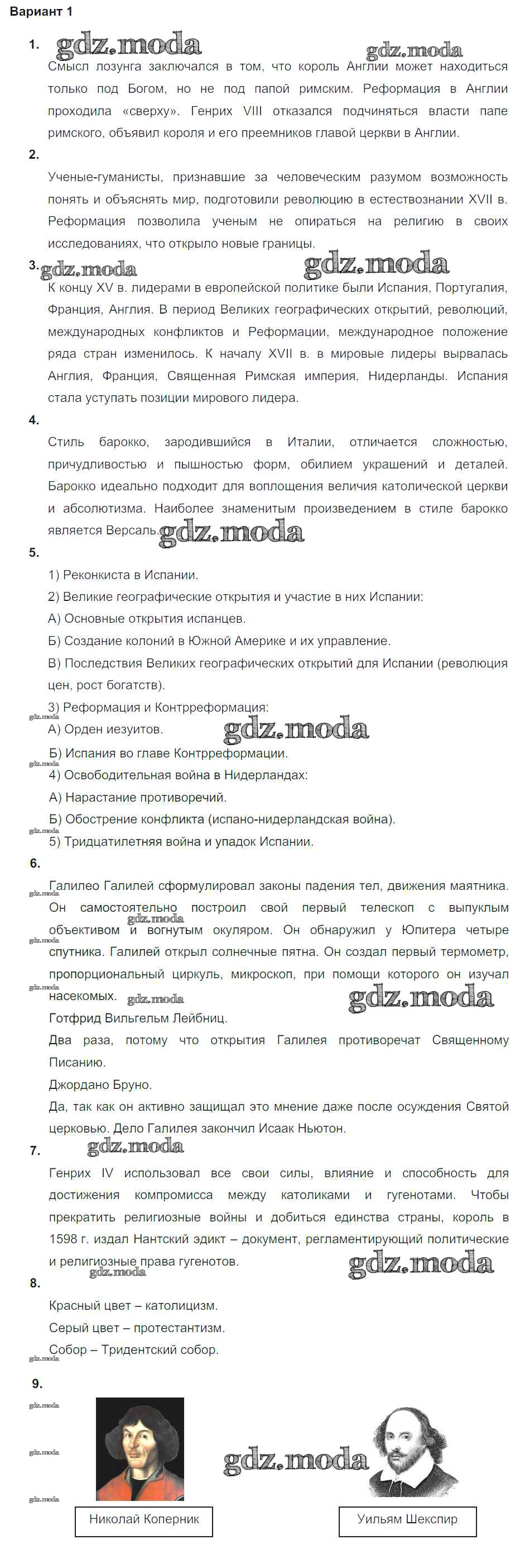 Европа в XVI-XVII в веках-традиции и новизна / проверочная работа 2 / вариант 1