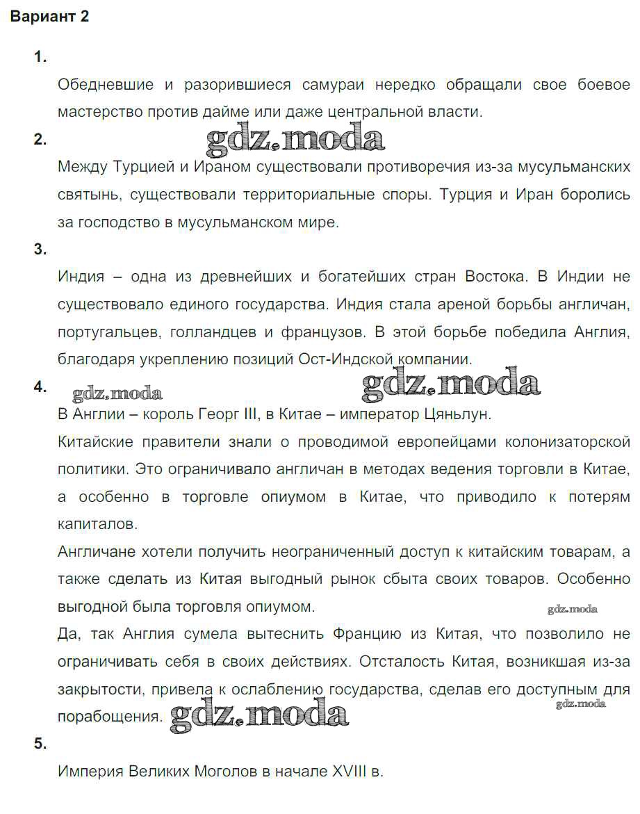 страны Востока в XVI-XVIII в веках / проверочная работа 2 / вариант 2