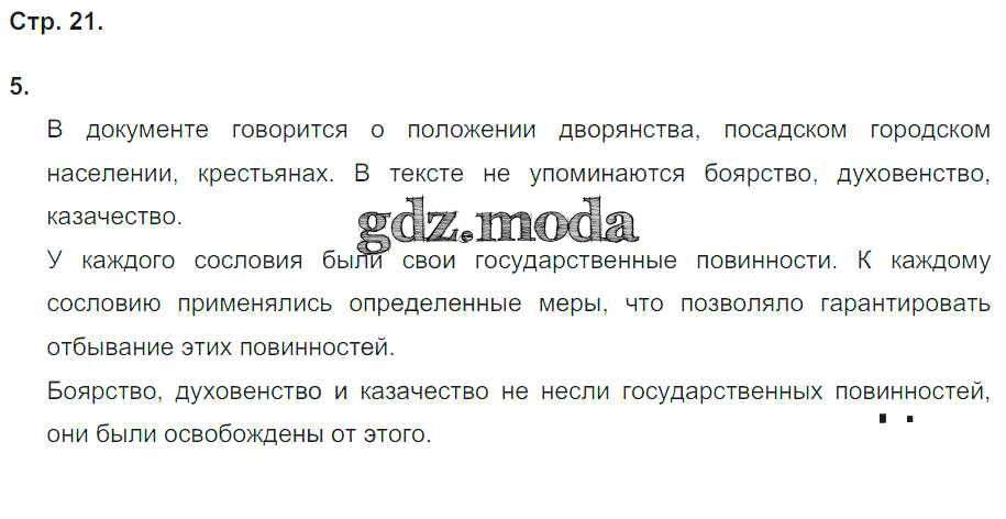 ГДЗ решение к заданию № 21 История 7 класс тетрадь-тренажёр Данилов А.А. Просвещение 2016 ФГОС бесплатно на гдз.мода!