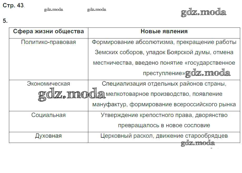 ГДЗ решение к заданию № 43 История 7 класс тетрадь-тренажёр Данилов А.А. Просвещение 2016 ФГОС бесплатно на гдз.мода!