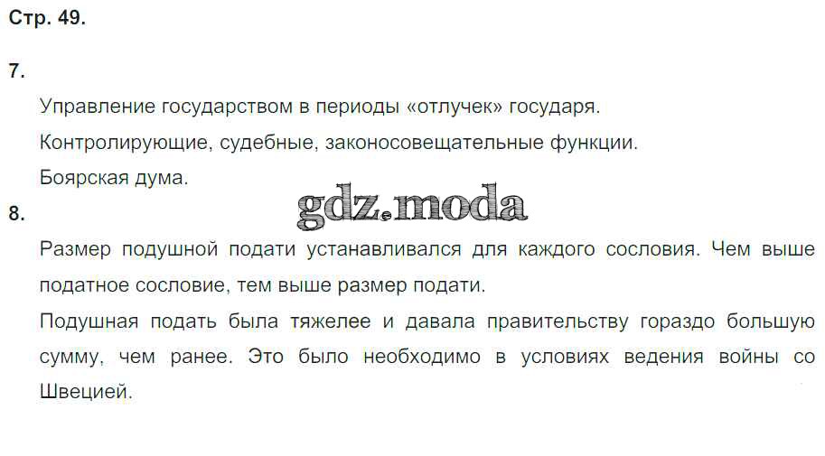 ГДЗ решение к заданию № 49 История 7 класс тетрадь-тренажёр Данилов А.А. Просвещение 2016 ФГОС бесплатно на гдз.мода!