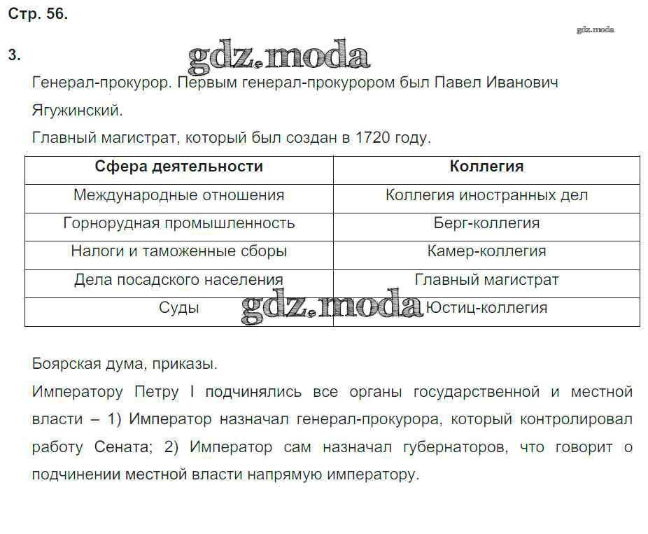 ГДЗ решение к заданию № 56 История 7 класс тетрадь-тренажёр Данилов А.А. Просвещение 2016 ФГОС бесплатно на гдз.мода!