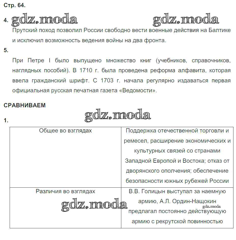 ГДЗ решение к заданию № 64 История 7 класс тетрадь-тренажёр Данилов А.А. Просвещение 2016 ФГОС бесплатно на гдз.мода!