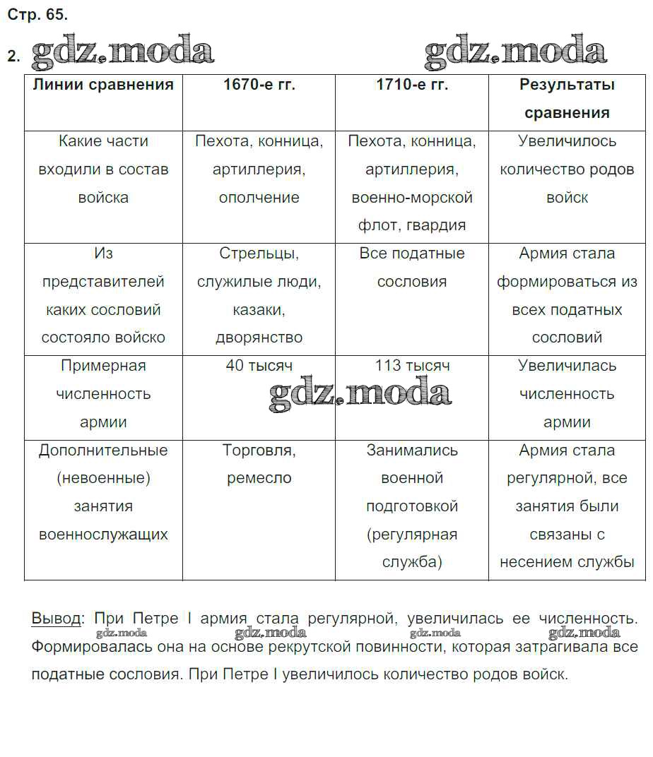 ГДЗ решение к заданию № 65 История 7 класс тетрадь-тренажёр Данилов А.А. Просвещение 2016 ФГОС бесплатно на гдз.мода!