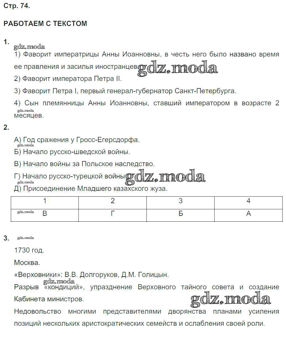 ГДЗ решение к заданию № 74 История 7 класс тетрадь-тренажёр Данилов А.А. Просвещение 2016 ФГОС бесплатно на гдз.мода!
