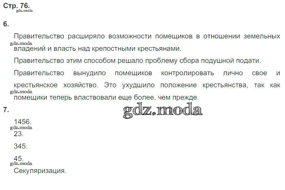 ГДЗ решение к заданию № 76 История 7 класс тетрадь-тренажёр Данилов А.А. Просвещение 2016 ФГОС бесплатно на гдз.мода!