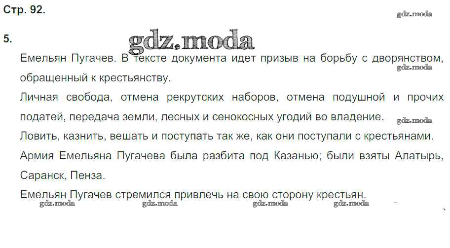ГДЗ решение к заданию № 92 История 7 класс тетрадь-тренажёр Данилов А.А. Просвещение 2016 ФГОС бесплатно на гдз.мода!