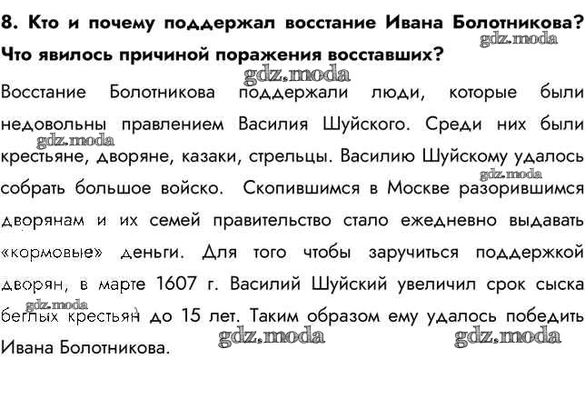 ГДЗ решение к заданию № 8 История России 7 класс Арсентьев Н.М. Просвещение 2016 Часть 1, Часть 2 ФГОС бесплатно на гдз.мода!