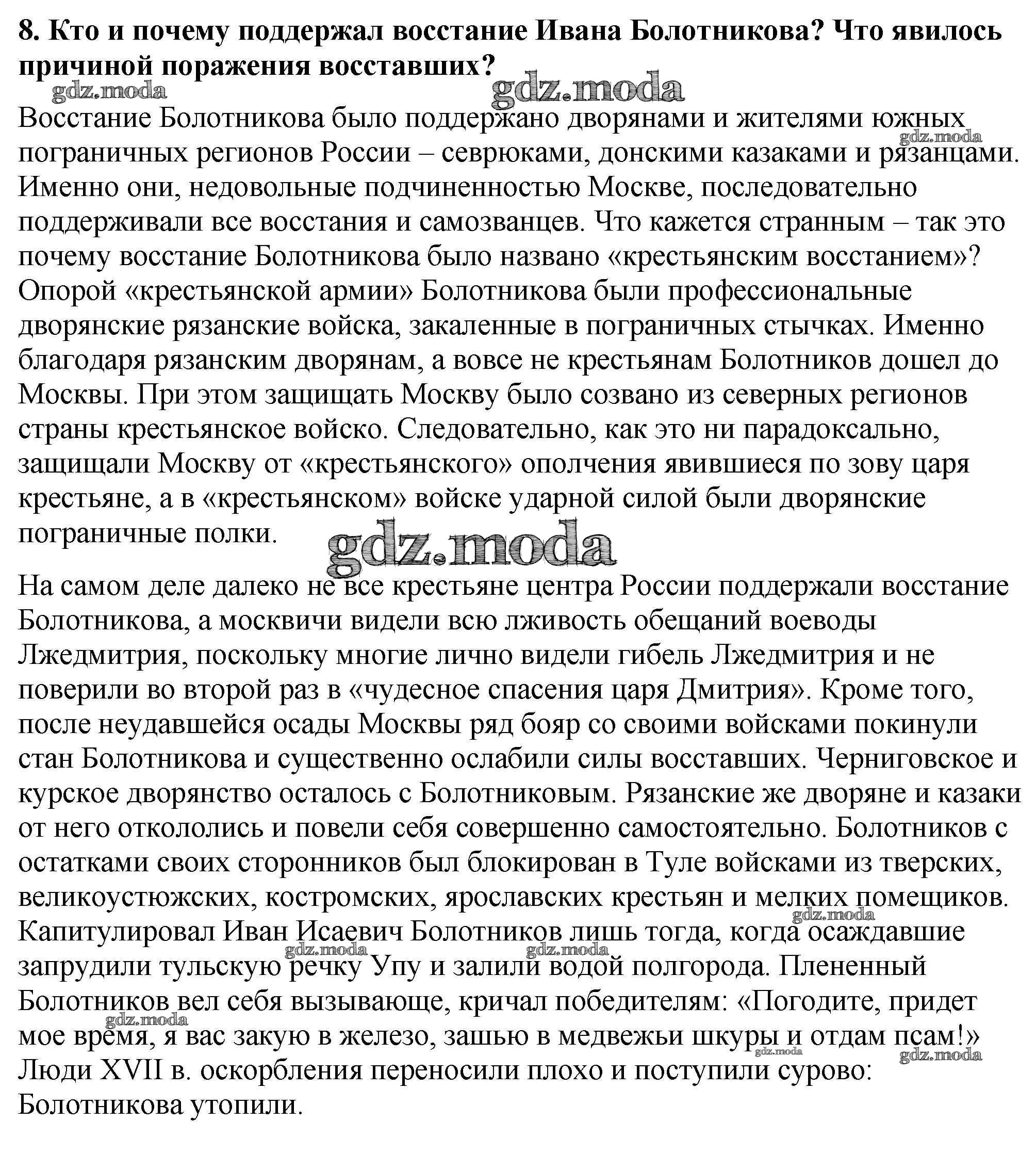ОТВЕТ на задание № 8 Учебник по Истории 7 класс Арсентьев