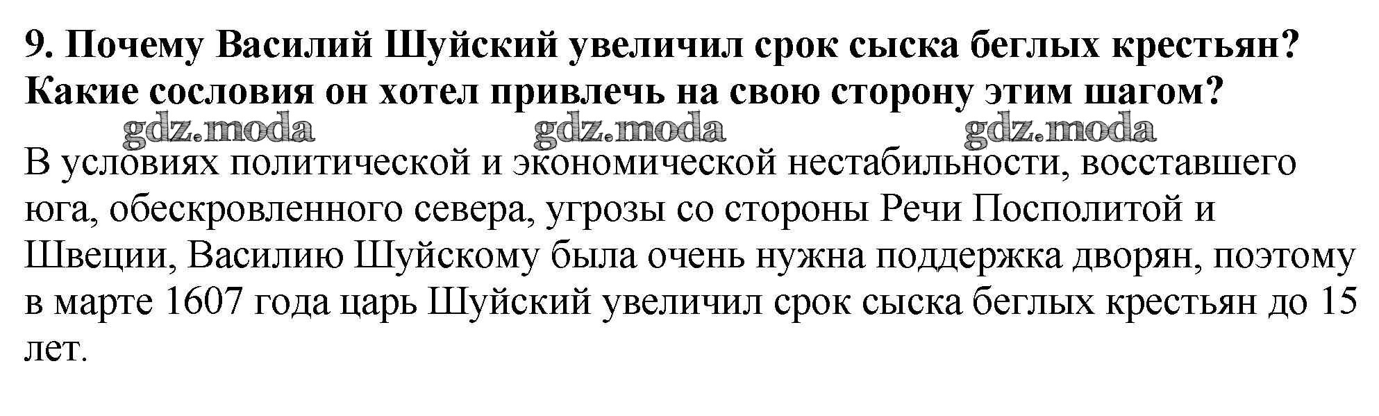 ГДЗ решение к заданию № 9 История России 7 класс Арсентьев Н.М. Просвещение 2016 Часть 1, Часть 2 ФГОС бесплатно на гдз.мода!