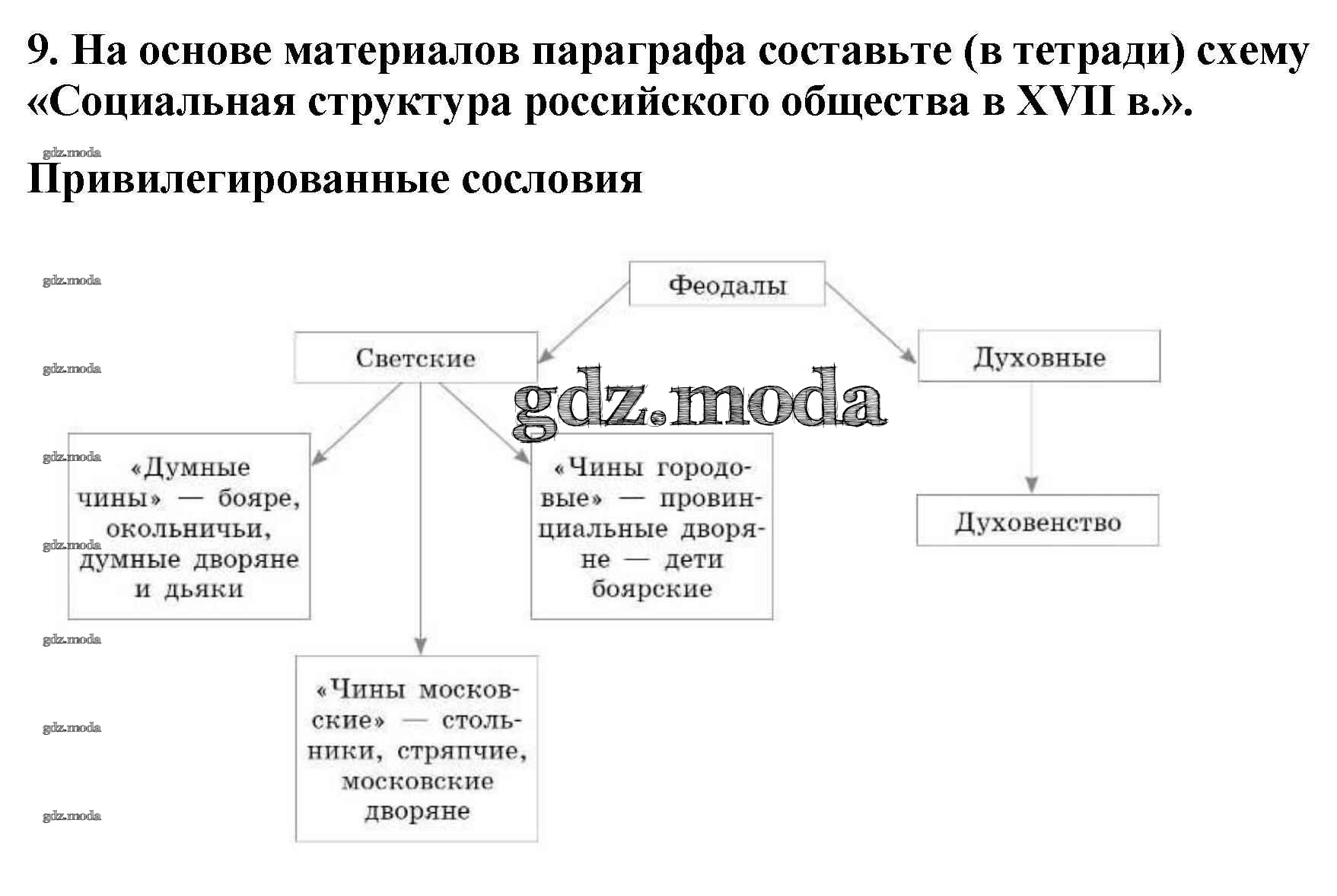 ГДЗ решение к заданию № 9 История России 7 класс Арсентьев Н.М. Просвещение 2016 Часть 1, Часть 2 ФГОС бесплатно на гдз.мода!
