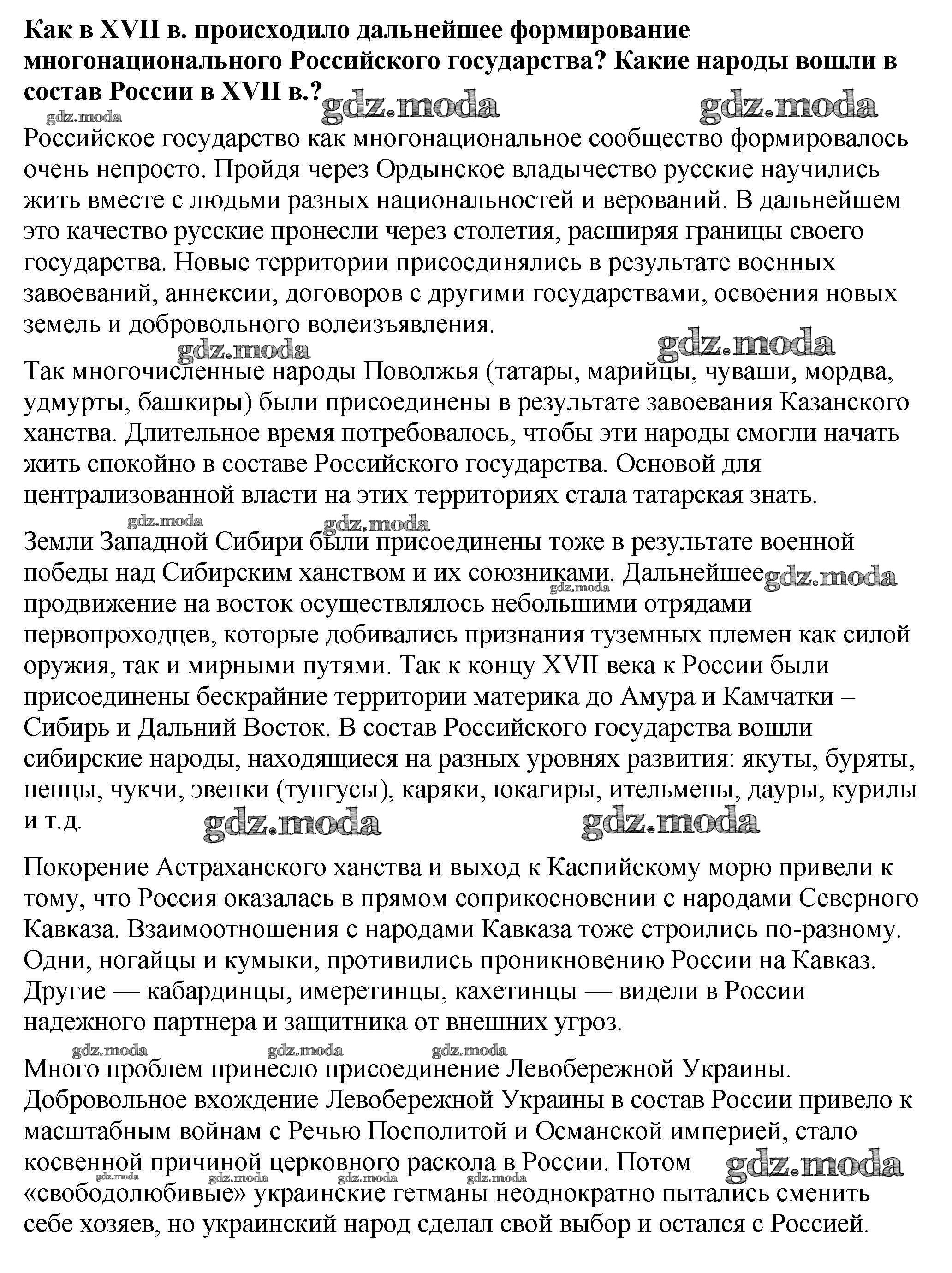 глава 2 / народы России в XVII в. / вопрос в начале параграфа / 1