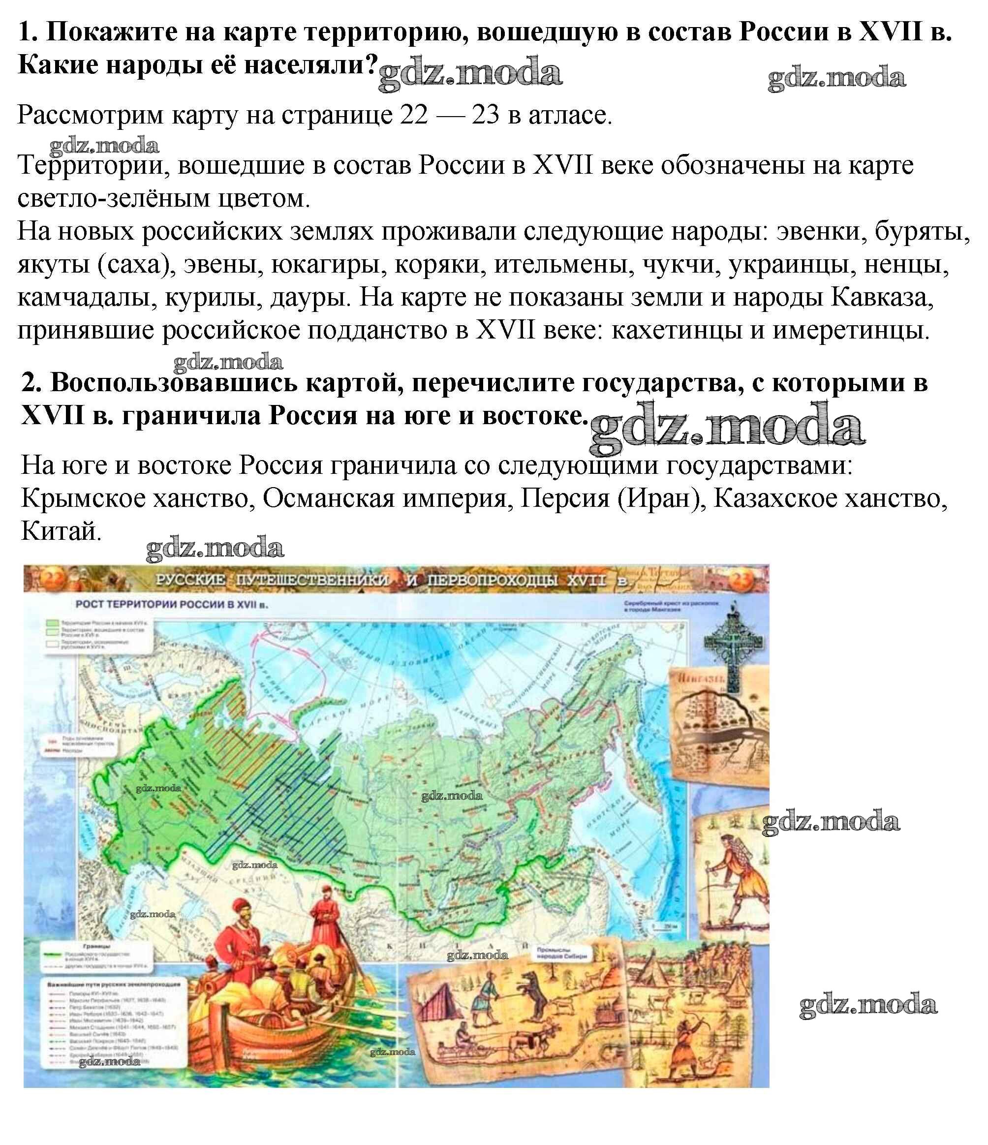 глава 2 / народы России в XVII в. / работаем с картой / стр.86