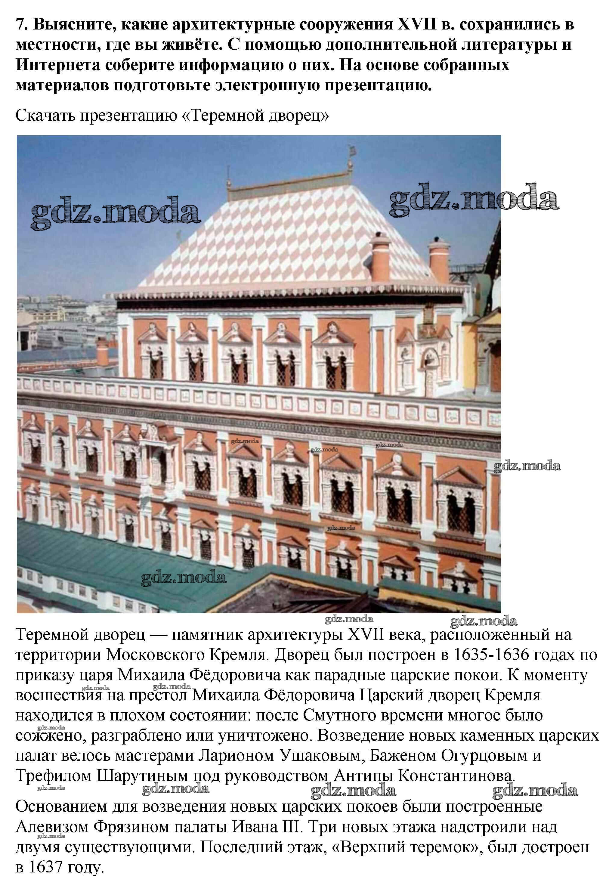 ГДЗ решение к заданию № 7 История России 7 класс Арсентьев Н.М. Просвещение 2016 Часть 1, Часть 2 ФГОС бесплатно на гдз.мода!