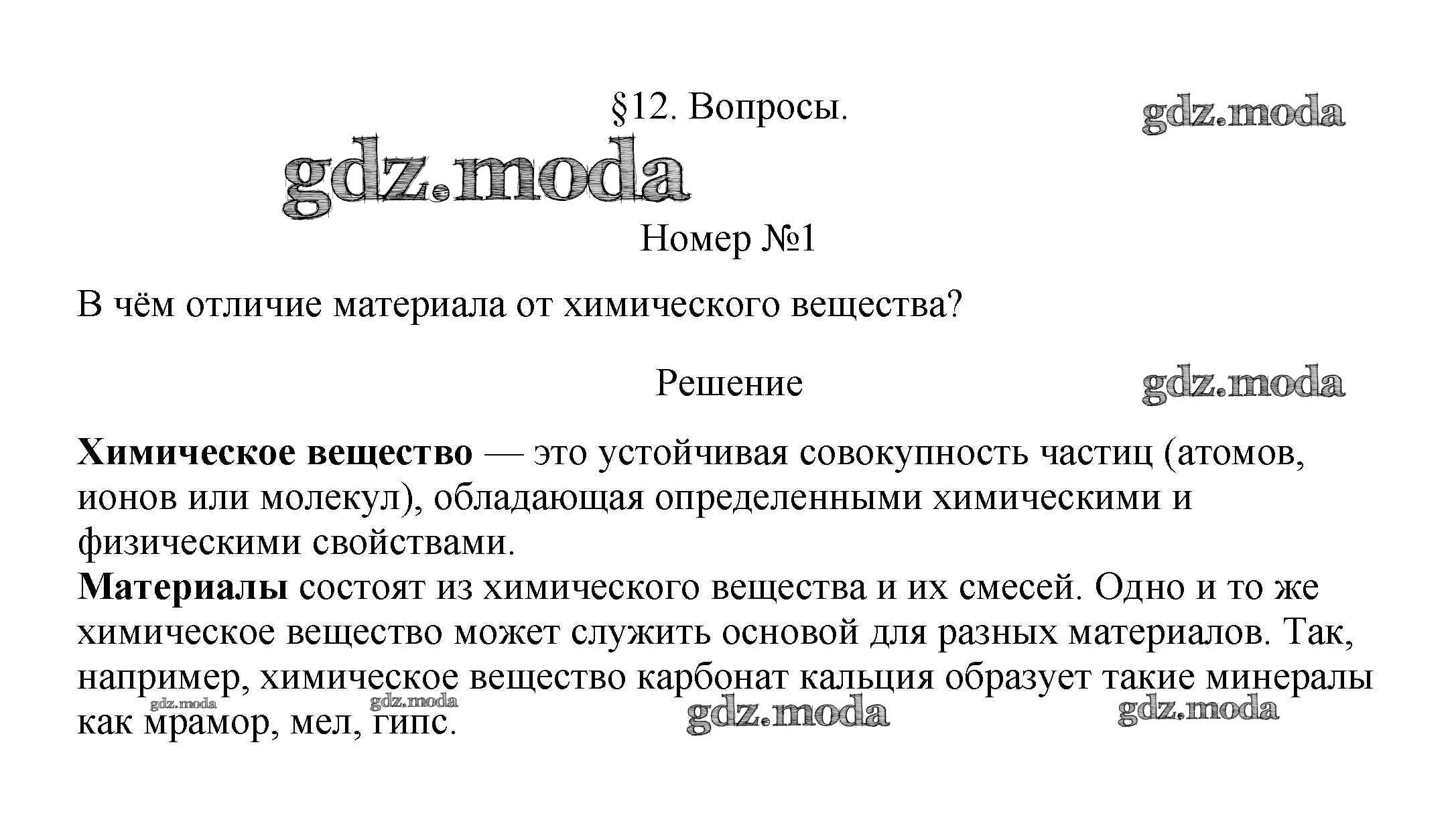 ОТВЕТ на задание № 1 Учебник по Химии 7 класс Габриелян