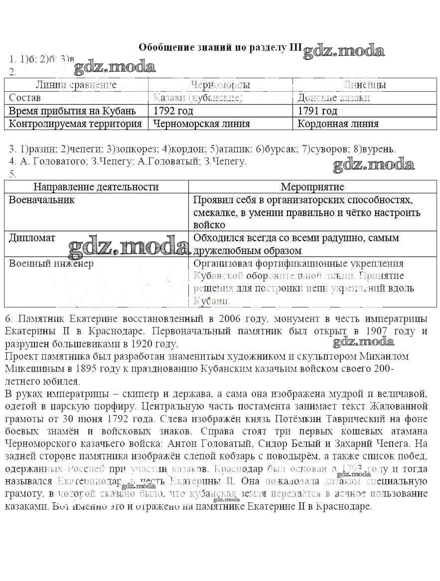 ОТВЕТ на задание № Раздел 3 Рабочая тетрадь по Кубановедению 7 класс Лукьянов