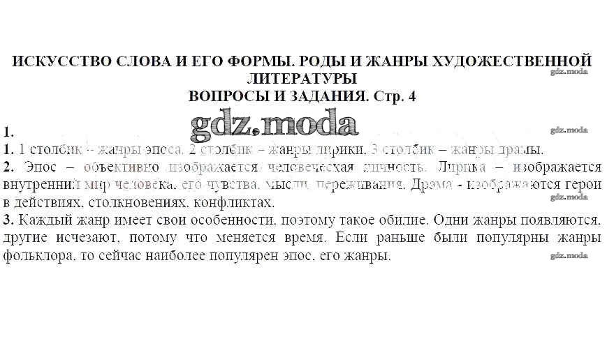 часть 1 / Искусство слова и его формы. Роды и жанры художественной литературы / Вопросы и задания / 1