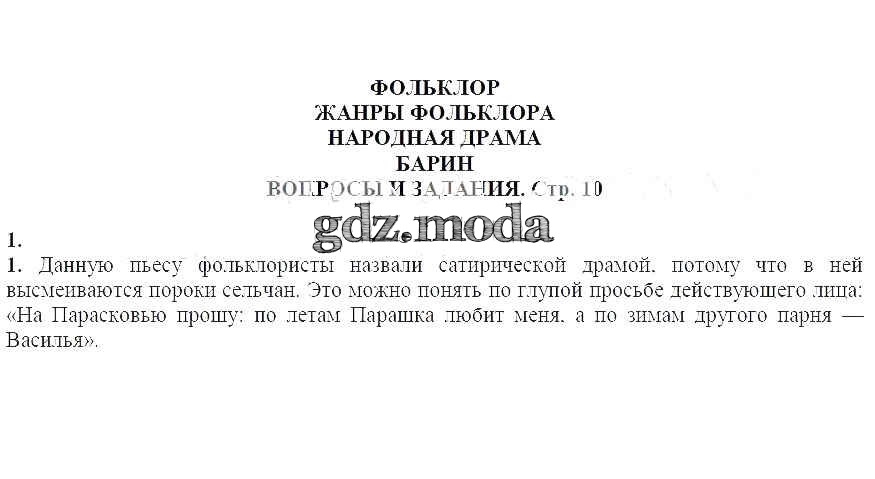 часть 1 / Фольклор. Жанры фольклора. Народная драма. Барин / Вопросы и задания / 1