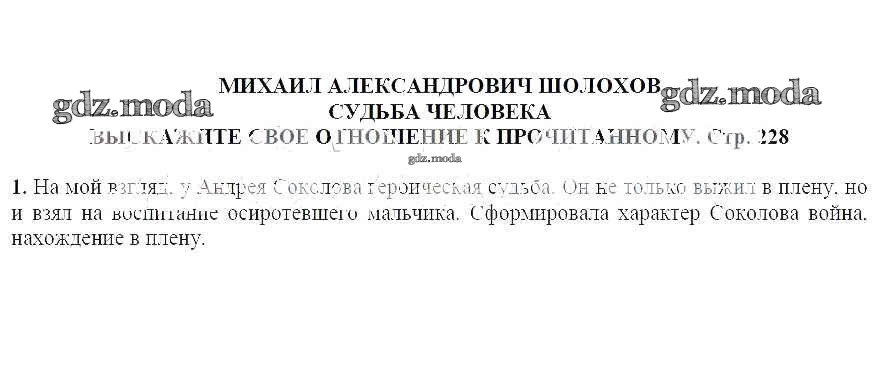 часть 2 / Михаил Александрович Шолохов. Судьба человека / Выскажите свое отношение к прочитанному / 1