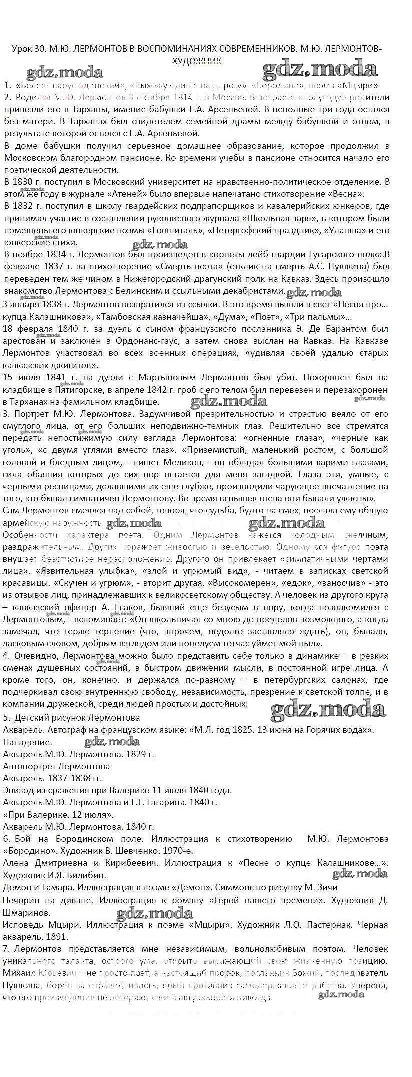 ГДЗ решение к заданию № 30 Литература 7 класс рабочая тетрадь Соловьева Ф.Е. Русское слово 2016 Часть 1, Часть 2 ФГОС бесплатно на гдз.мода!