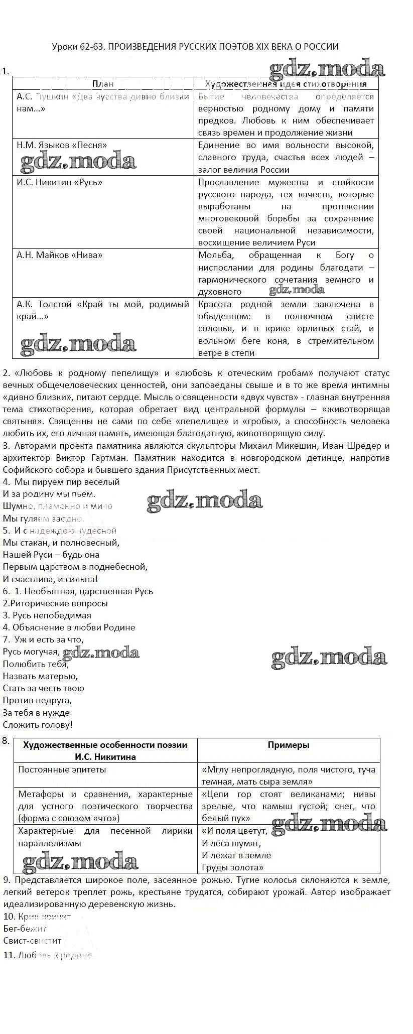 ГДЗ решение к заданию № 62 Литература 7 класс рабочая тетрадь Соловьева Ф.Е. Русское слово 2016 Часть 1, Часть 2 ФГОС бесплатно на гдз.мода!