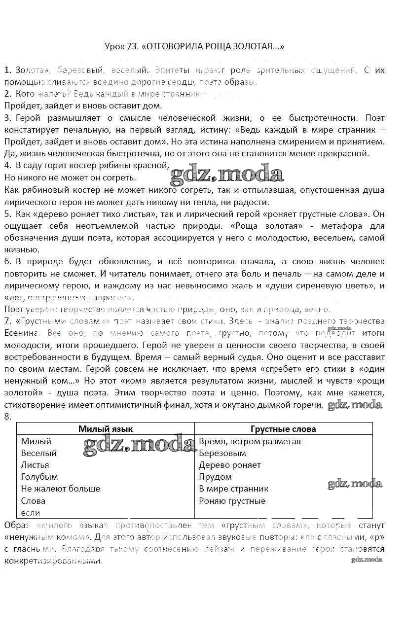 ГДЗ решение к заданию № 73 Литература 7 класс рабочая тетрадь Соловьева Ф.Е. Русское слово 2016 Часть 1, Часть 2 ФГОС бесплатно на гдз.мода!