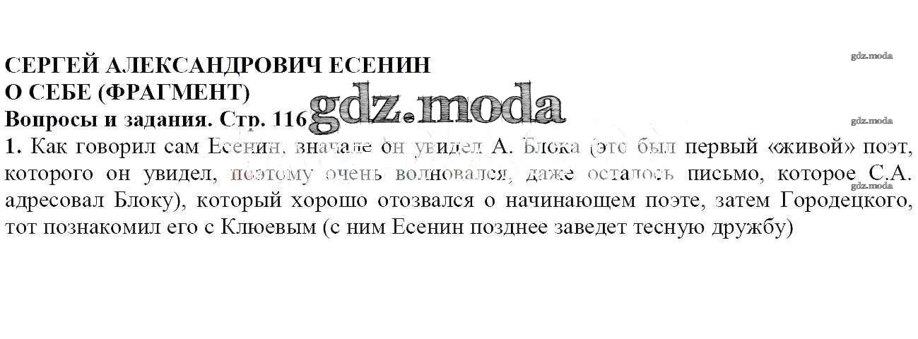 часть 2 / Сергей Александрович Есенин. О себе (фрагмент) / Вопросы и задания / 1