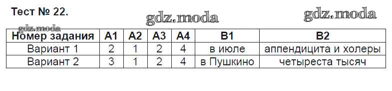 ГДЗ решение к заданию № Тест №22 Литература 7 класс контрольно-измерительные материалы Зубова Е.Н. ВАКО 2016 ФГОС бесплатно на гдз.мода!