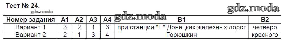 ГДЗ решение к заданию № Тест №24 Литература 7 класс контрольно-измерительные материалы Зубова Е.Н. ВАКО 2016 ФГОС бесплатно на гдз.мода!