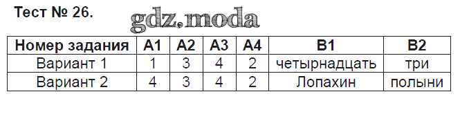ГДЗ решение к заданию № Тест №26 Литература 7 класс контрольно-измерительные материалы Зубова Е.Н. ВАКО 2016 ФГОС бесплатно на гдз.мода!