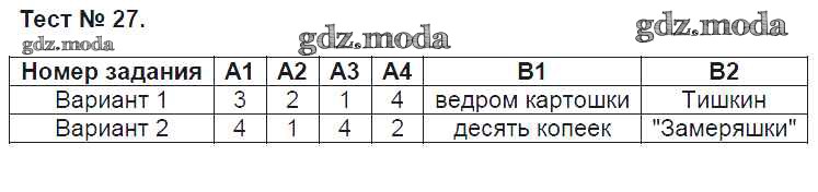 ГДЗ решение к заданию № Тест №27 Литература 7 класс контрольно-измерительные материалы Зубова Е.Н. ВАКО 2016 ФГОС бесплатно на гдз.мода!