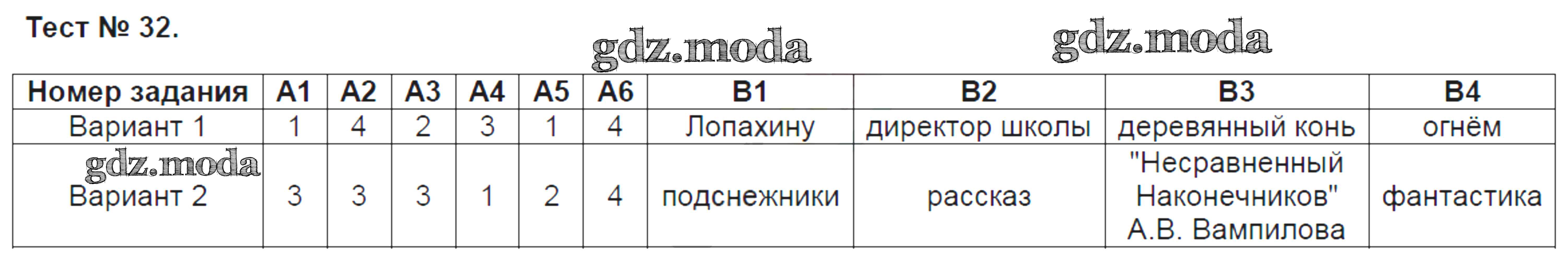 ГДЗ решение к заданию № Тест №32 Литература 7 класс контрольно-измерительные материалы Зубова Е.Н. ВАКО 2016 ФГОС бесплатно на гдз.мода!