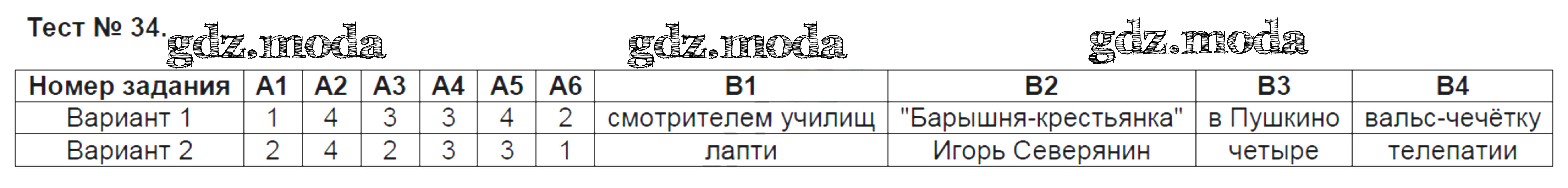 ГДЗ решение к заданию № Тест №34 Литература 7 класс контрольно-измерительные материалы Зубова Е.Н. ВАКО 2016 ФГОС бесплатно на гдз.мода!