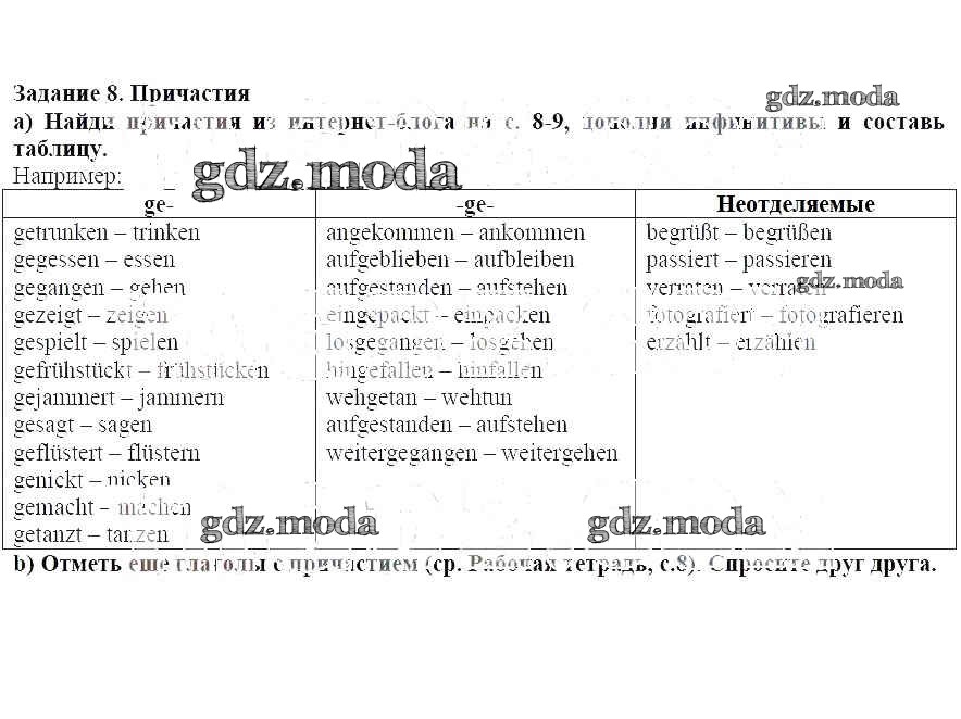ГДЗ решение к заданию № 8 Немецкий язык 7 класс Аверин М.М. Просвещение 2016 ФГОС бесплатно на гдз.мода!