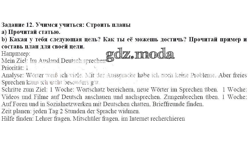 ГДЗ решение к заданию № 12 Немецкий язык 7 класс Аверин М.М. Просвещение 2016 ФГОС бесплатно на гдз.мода!
