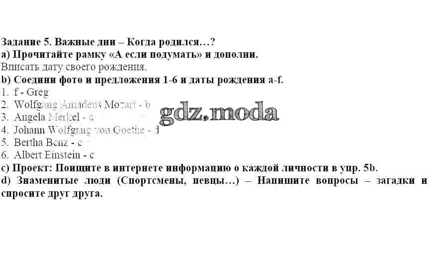 ГДЗ решение к заданию № 5 Немецкий язык 7 класс Аверин М.М. Просвещение 2016 ФГОС бесплатно на гдз.мода!