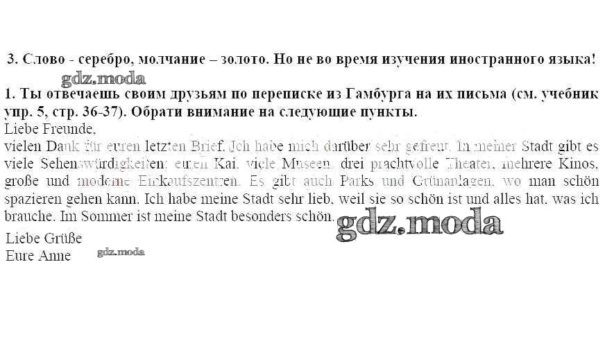 ОТВЕТ на задание № 1 Рабочая тетрадь по Немецкому языку 7 класс Бим