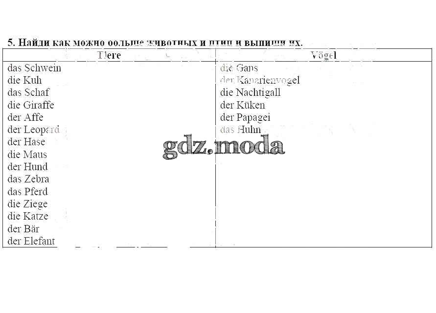 ГДЗ решение к заданию № 5 Немецкий язык 7 класс рабочая тетрадь Бим И.Л. Просвещение 2012 ФГОС бесплатно на гдз.мода!