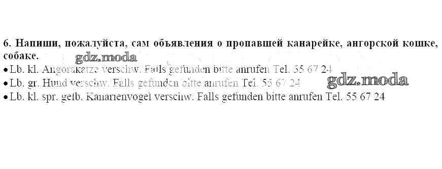 ГДЗ решение к заданию № 6 Немецкий язык 7 класс рабочая тетрадь Бим И.Л. Просвещение 2012 ФГОС бесплатно на гдз.мода!