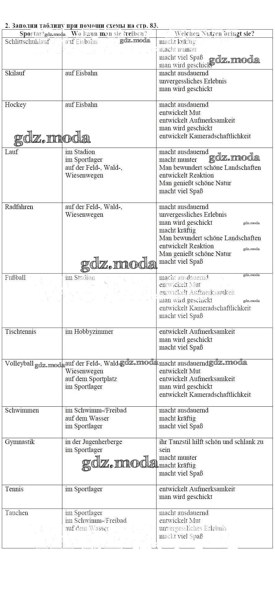 ГДЗ решение к заданию № 2 Немецкий язык 7 класс рабочая тетрадь Бим И.Л. Просвещение 2012 ФГОС бесплатно на гдз.мода!
