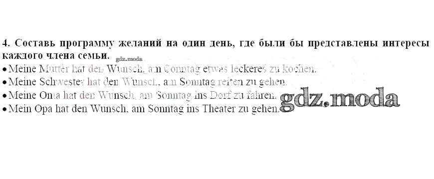 ГДЗ решение к заданию № 4 Немецкий язык 7 класс рабочая тетрадь Бим И.Л. Просвещение 2012 ФГОС бесплатно на гдз.мода!