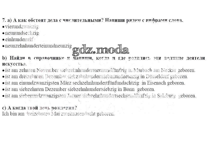 ГДЗ решение к заданию № 7 Немецкий язык 7 класс рабочая тетрадь Бим И.Л. Просвещение 2012 ФГОС бесплатно на гдз.мода!