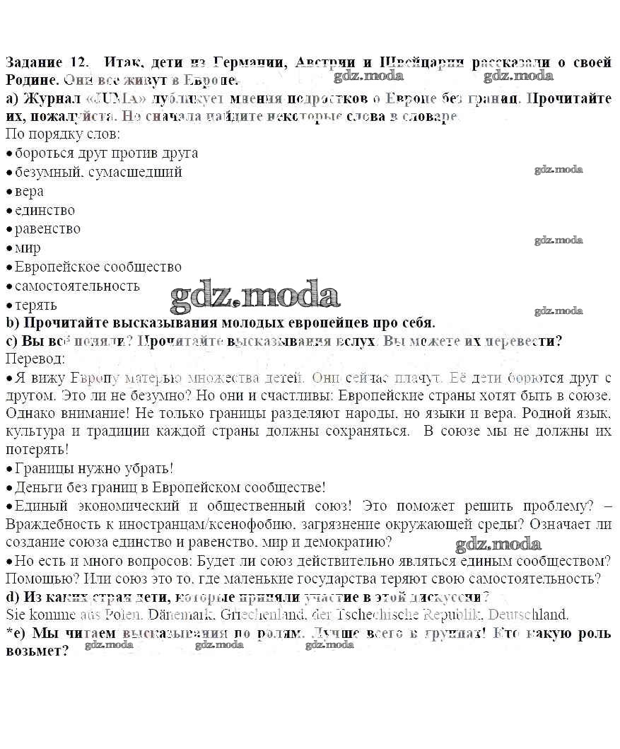ГДЗ решение к заданию № 12 Немецкий язык 7 класс Бим И.Л. Просвещение 2019 ФГОС бесплатно на гдз.мода!