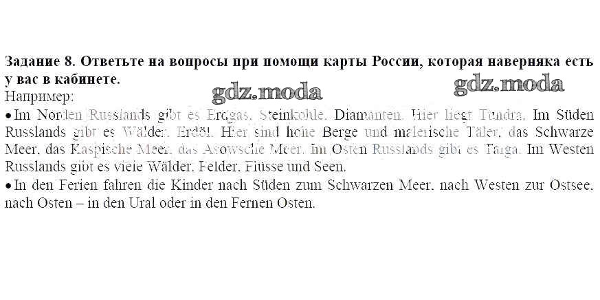 ГДЗ решение к заданию № 8 Немецкий язык 7 класс Бим И.Л. Просвещение 2019 ФГОС бесплатно на гдз.мода!