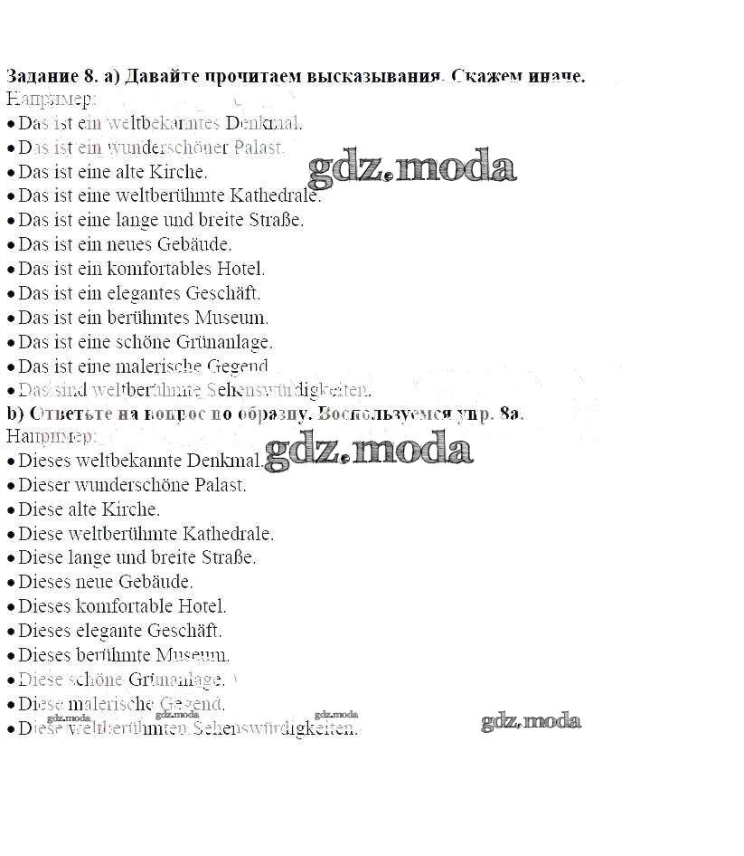 ГДЗ решение к заданию № 8 Немецкий язык 7 класс Бим И.Л. Просвещение 2019 ФГОС бесплатно на гдз.мода!