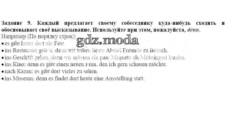 ГДЗ решение к заданию № 9 Немецкий язык 7 класс Бим И.Л. Просвещение 2019 ФГОС бесплатно на гдз.мода!