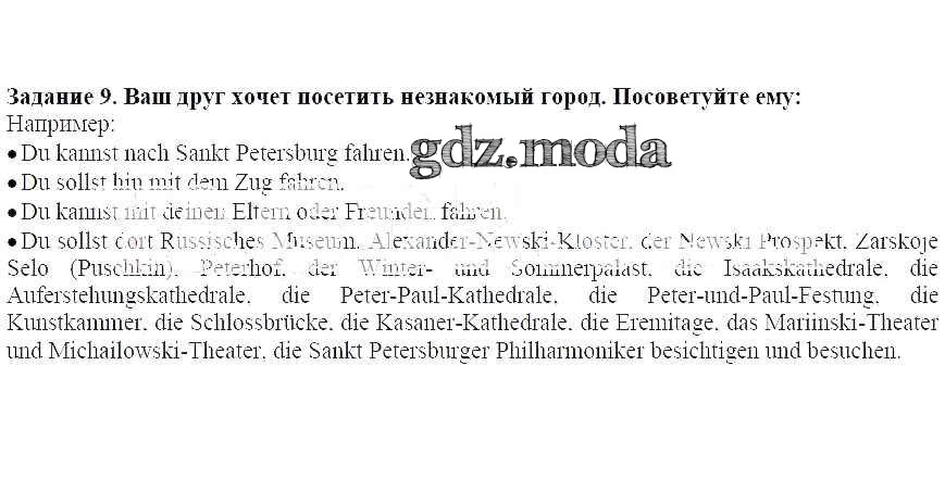 ГДЗ решение к заданию № 9 Немецкий язык 7 класс Бим И.Л. Просвещение 2019 ФГОС бесплатно на гдз.мода!