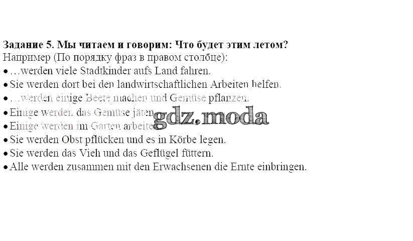 ГДЗ решение к заданию № 5 Немецкий язык 7 класс Бим И.Л. Просвещение 2019 ФГОС бесплатно на гдз.мода!