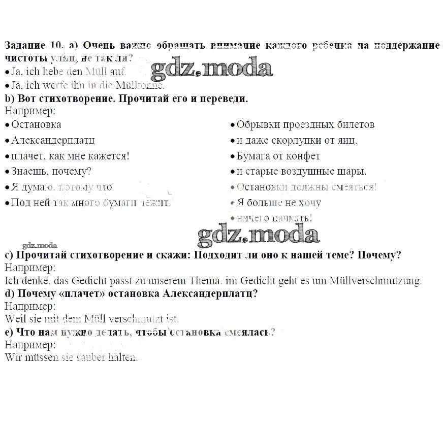 ГДЗ решение к заданию № 10 Немецкий язык 7 класс Бим И.Л. Просвещение 2019 ФГОС бесплатно на гдз.мода!